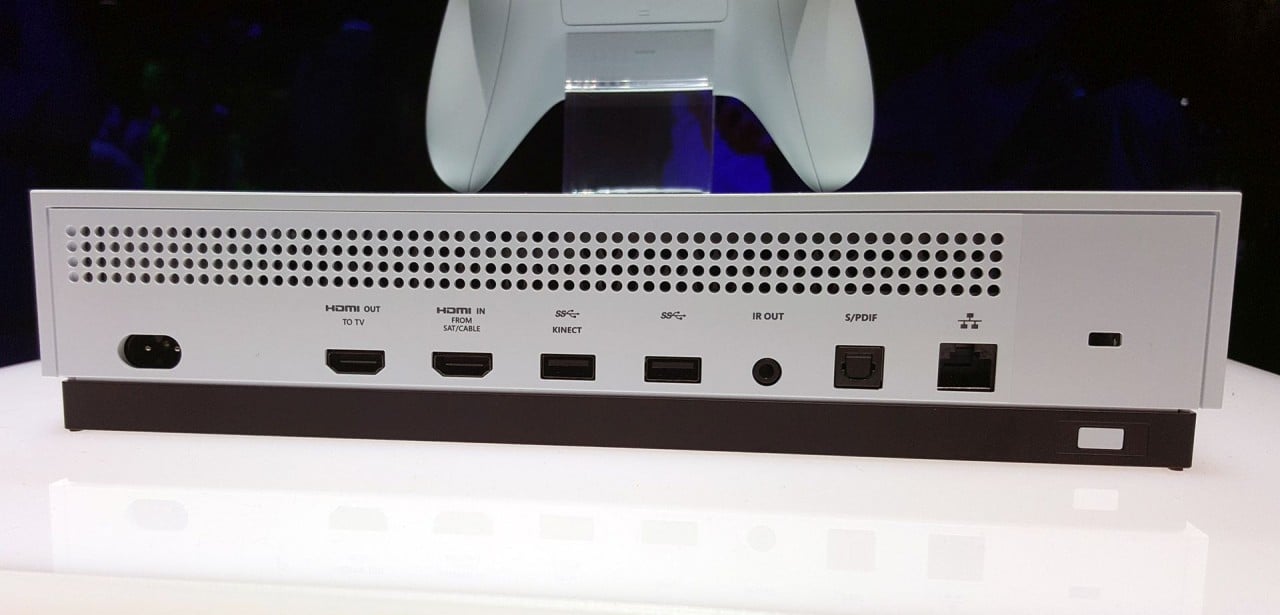 「Xbox One S」の端子類のチェック、Kinect接続には専用アダプターが必要