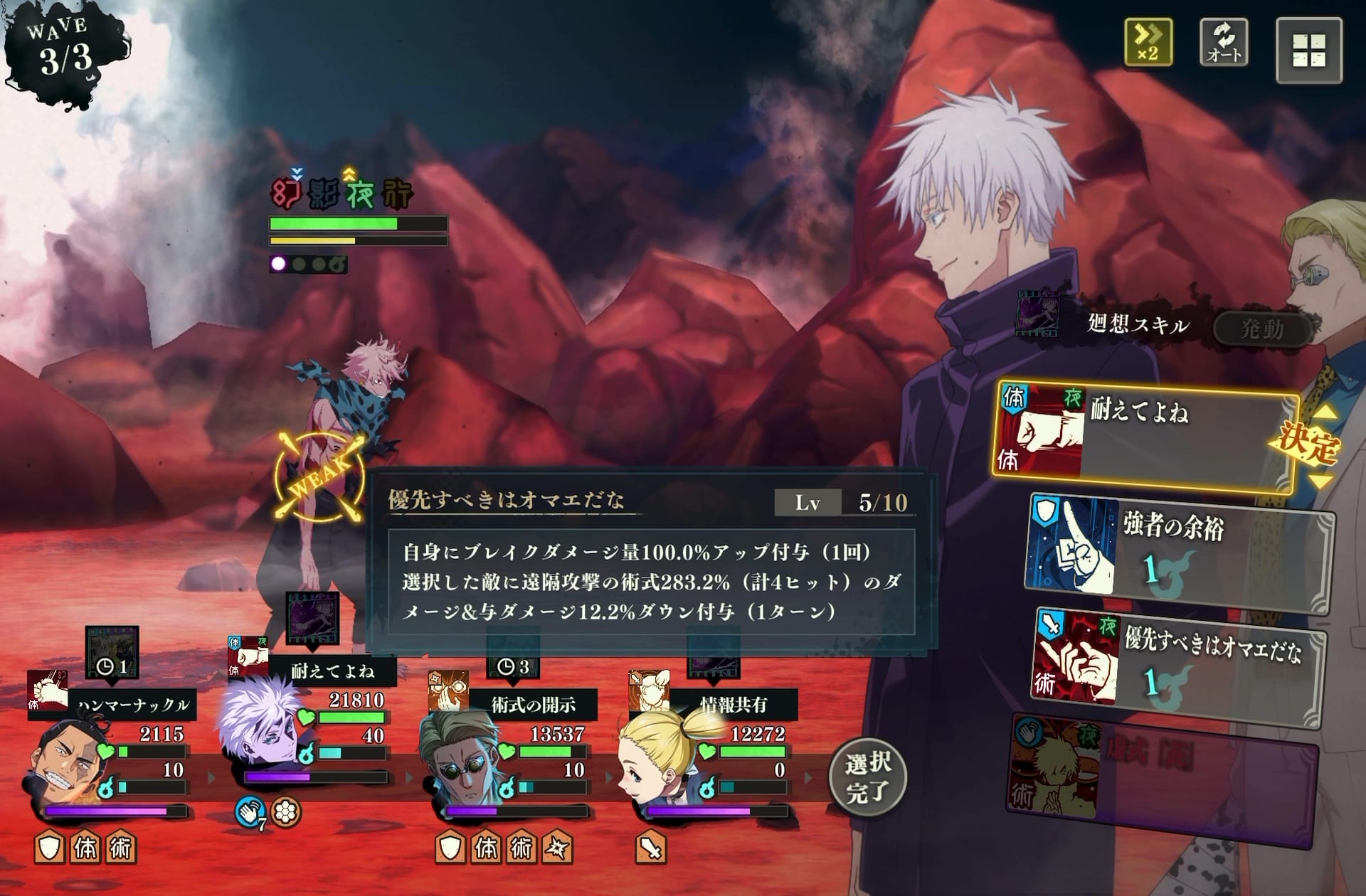 【呪術廻戦ファンパレ】夜属性のSSR五条悟が追加、10-2対策に使えそう
