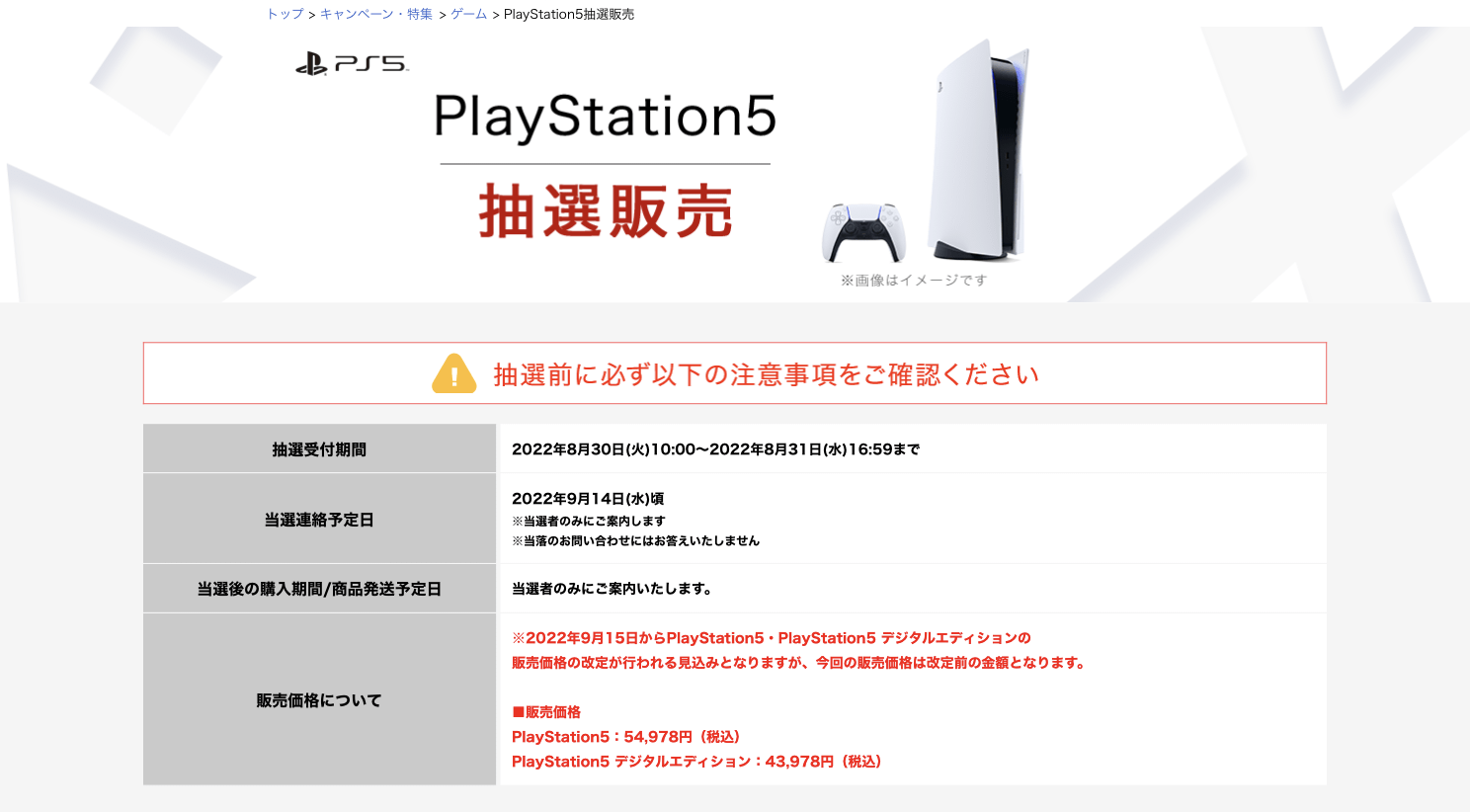 楽天で値上げ前最後となるPS5本体抽選販売が緊急開催!(8/31まで)
