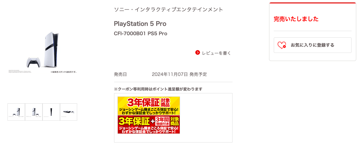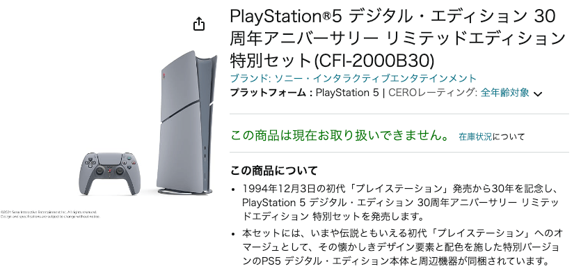 30周年モデルの他にPS5 Proの予約受付も開始されたが、そちらもすぐに完売となっている。